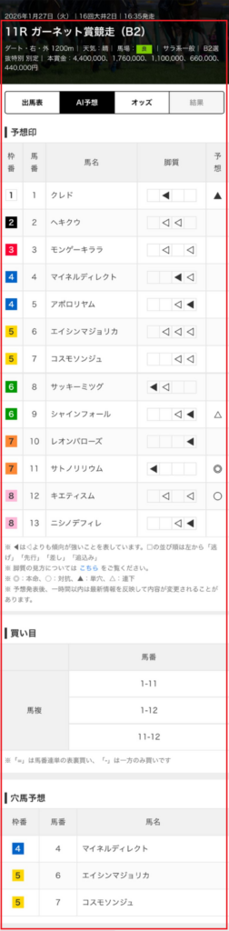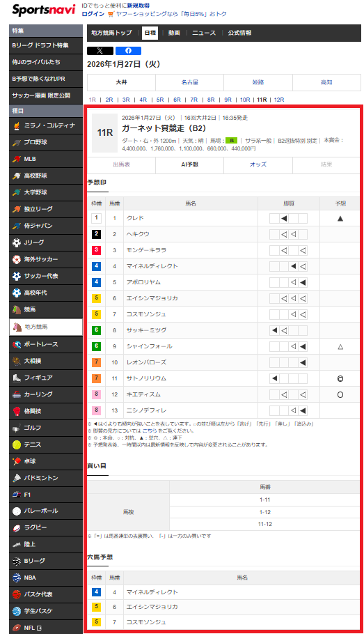 ・AI 予想印(スポーツナビ専用設計)