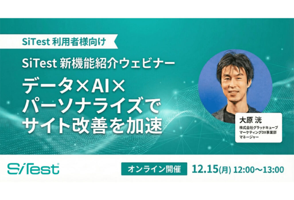 【無料オンラインセミナー】SiTest(サイテスト)新機能ウェビナー:データ × AI × パーソナライズでサイト改善を加速